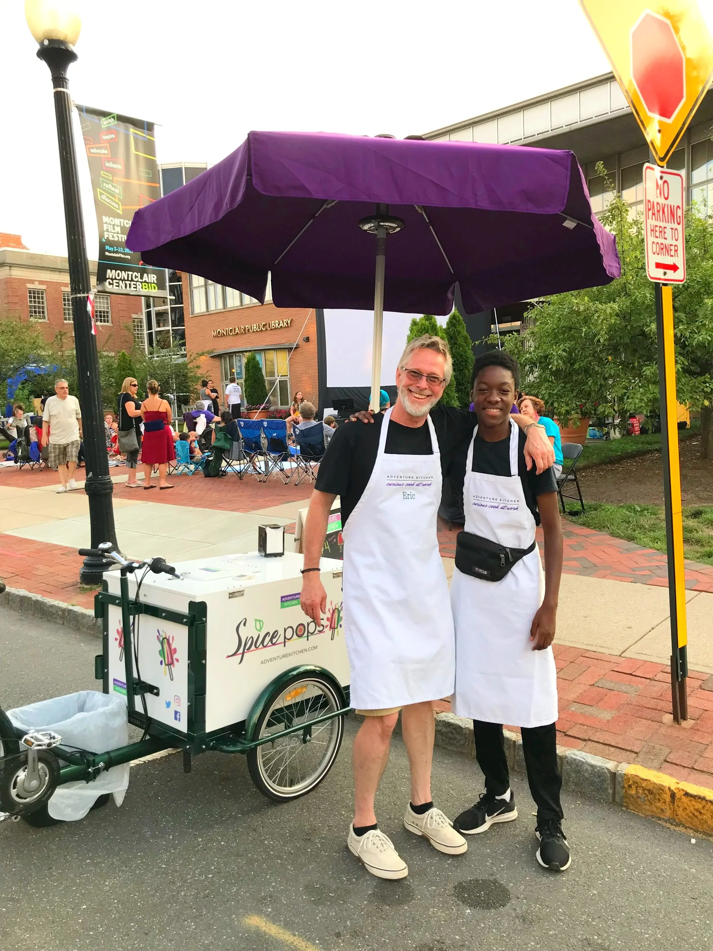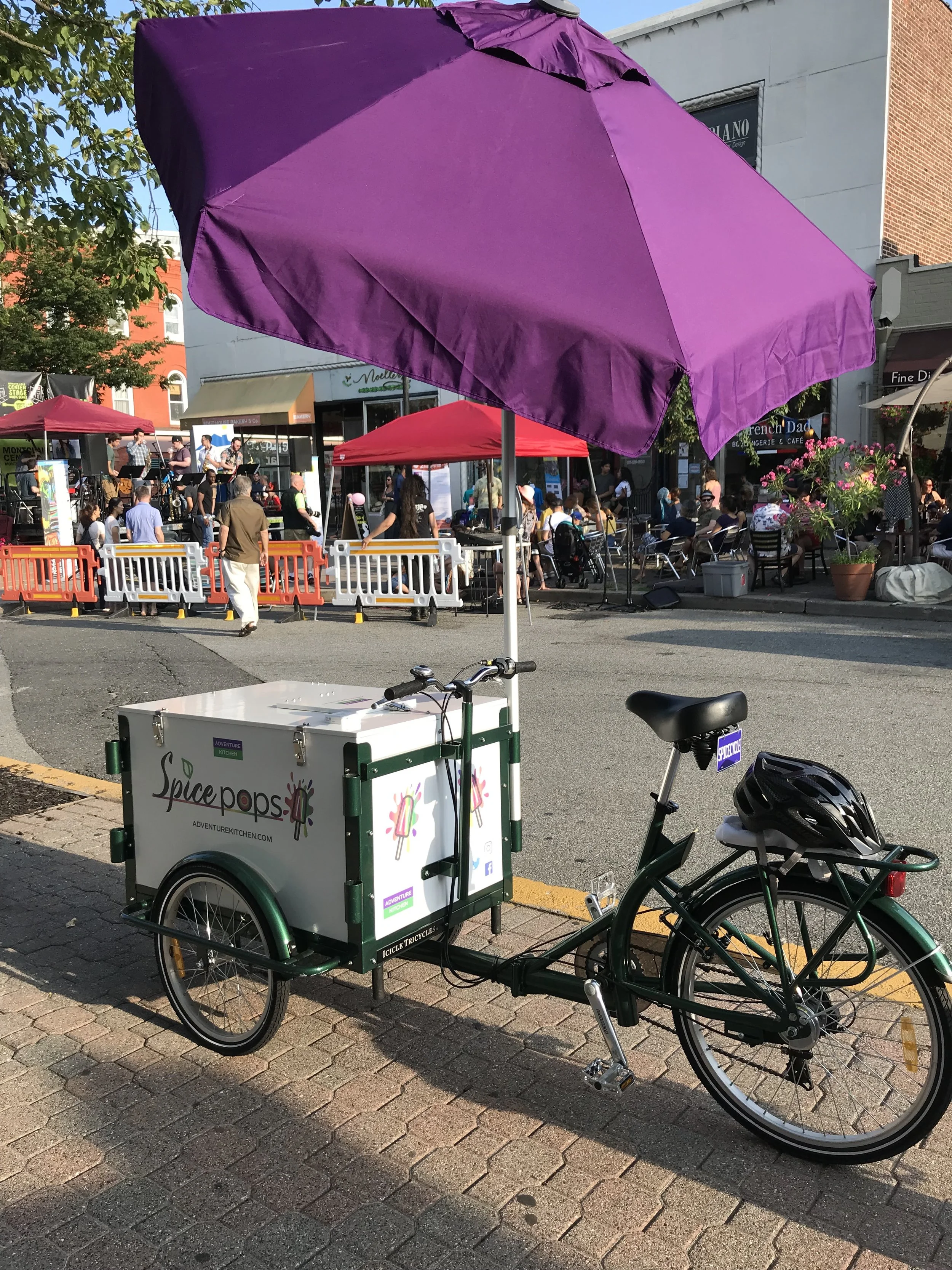 1) You’ll load up at our kitchen headquarters in Montclair Center, then head to the location. We’ll give you all the info on how many pops to bring, how to load everything up, and where to go. Events are at various locations within a 5-20 minute drive from our headquarters (or a 15-minute ride on the Spicecycle).